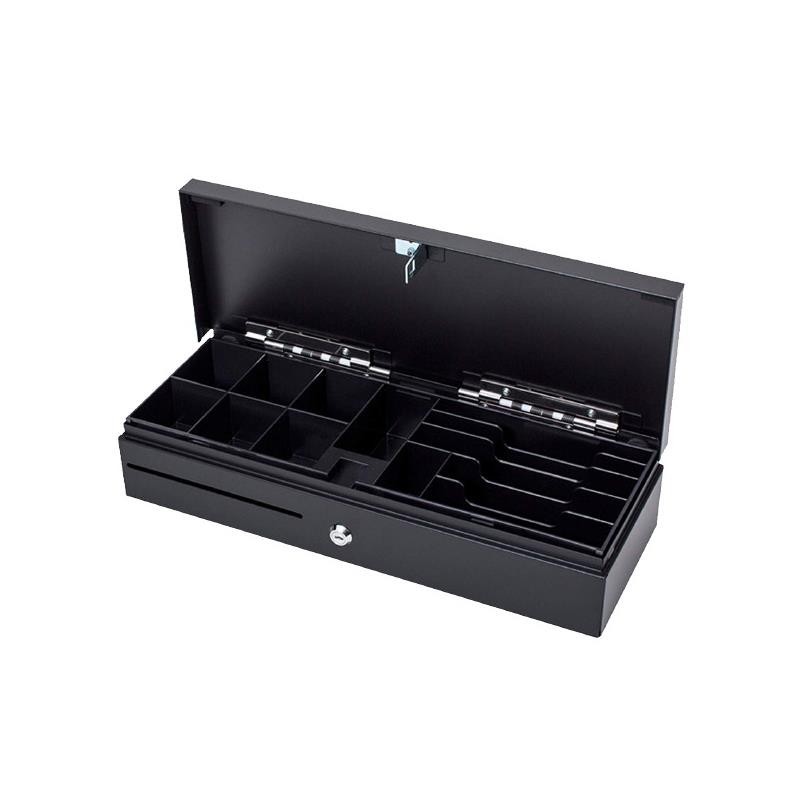 Cajón portamonedas con 6/7 compartimentos ajustables para billetes y 8 fijos para monedas. Cuenta con una cerradura de tres posiciones, carcasa...
