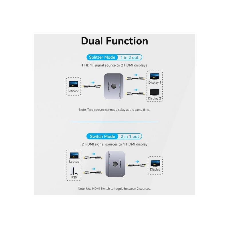 Conversión bidireccional con un interruptor de un botón: Cambio rápido entre dispositivos con solo presionar un botón.