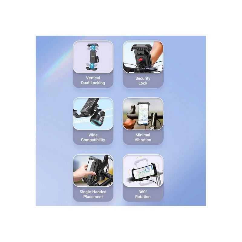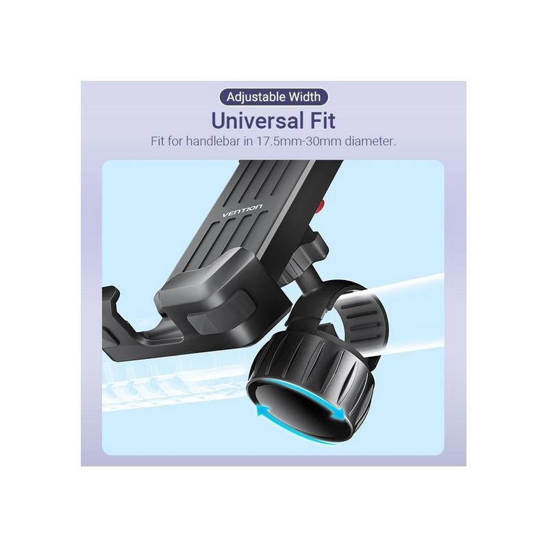 Soporte para smartphone de bicicleta Vention KSFB0, con montaje rápido y seguro, compatible con manillares de 17.5 mm a 30 mm y teléfonos de 4.7" a 6.9".