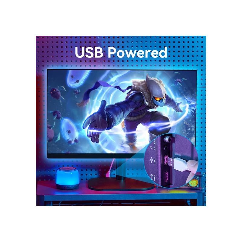 Tira LED RGB Vention PAAWH de 2 metros, con control remoto y alimentación USB, ideal para ambientar cualquier espacio con estilo y color personalizable.