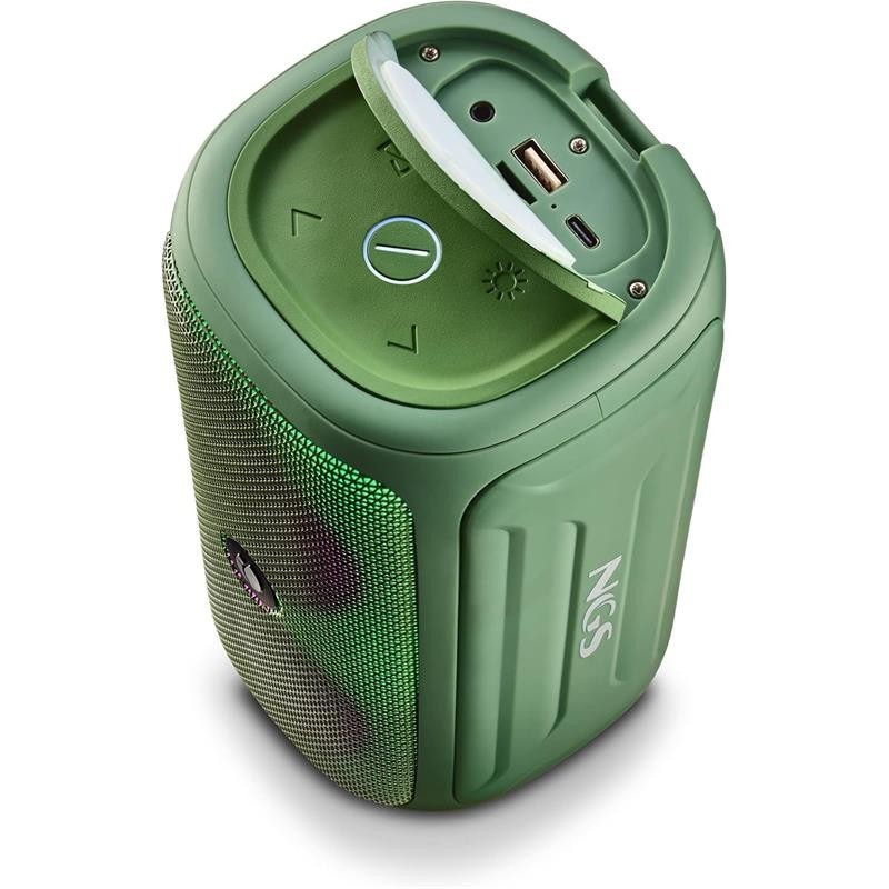ALTAVOCES NGS ROLLER BEAST RGB PORTATIL WATERPROOF IPX5/BT/USB/AUX/FM GREEN