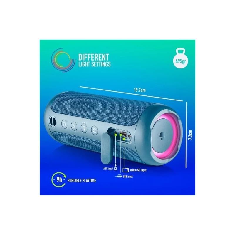 ALTAVOCES NGS ROLLER FURIA 2 RGB PORTATIL WATERPROOF IPX7/BT/USB/AUX BLUE