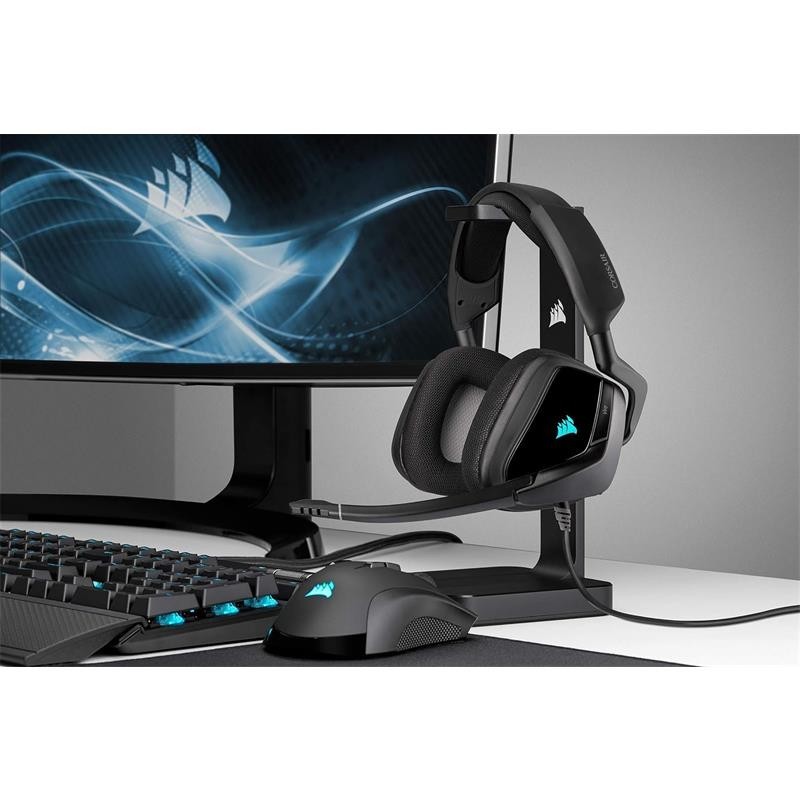 El distintivo diseño de los VOID RGB ELITE USB y una construcción duradera se completan con una iluminación RGB completamente personalizable en cada auricular. El potente software CORSAIR iCUE une todo, brindando un control absoluto sobre los