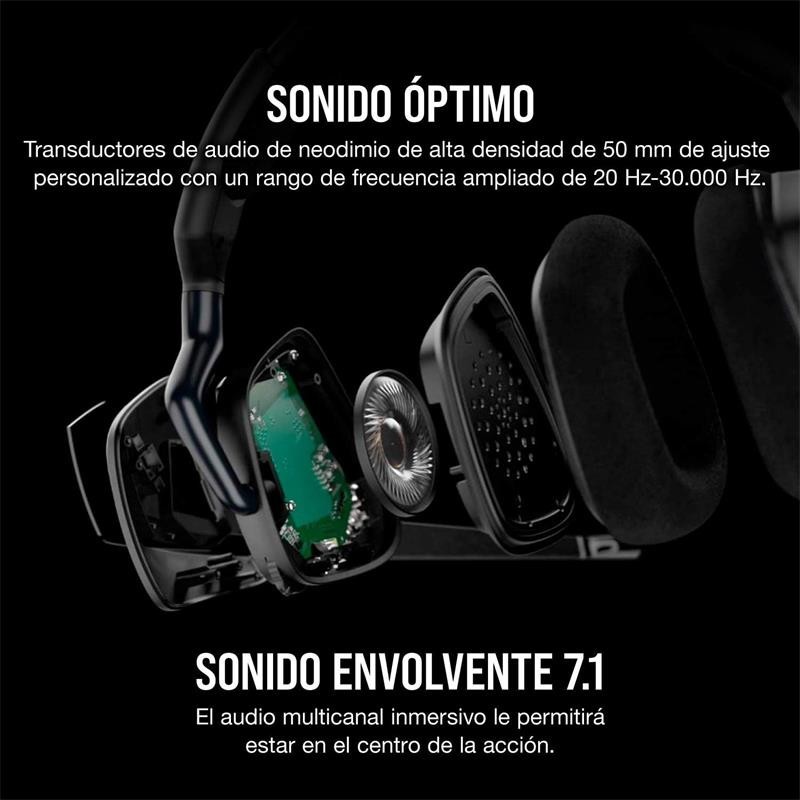 - Sonido increíble. Escúchelo todo, desde la pisada más ligera hasta la explosión más atronadora, gracias a los transductores de audio de neodimio de alta densidad de 50 mm de ajuste personalizado con un rango de frecuencia ampliado de 20 Hz-30 000 Hz.