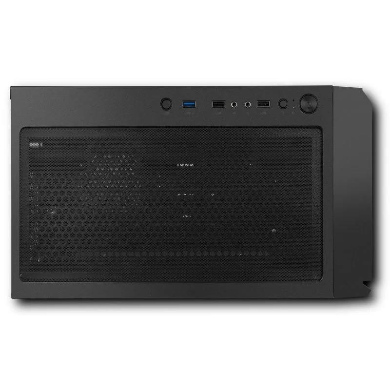 - PANEL FRONTAL Y ACCESOS. El sencillo diseño de la semitorre Nox Infinity Beta dispone de un frontal mesh que permite un idóneo flujo de aire, manteniendo de esta manera la temperatura apropiada para tu PC. En su panel superior se encuentran dos puertos USB 2.0 y un puerto USB 3.0 de alta velocidad, así como las conexiones de audio.