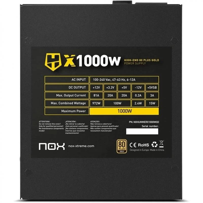 Nox Hummer X 1000W Gold Edition es una fuente diseñada para aquellas configuraciones de altas prestaciones que montan las nuevas tarjetas gráficas. Con Certificación 80 Plus Gold, esta fuente de alimentación completamente modular cuenta con un ultrasilencioso ventilador de 120 mm con regulador de velocidad integrado.