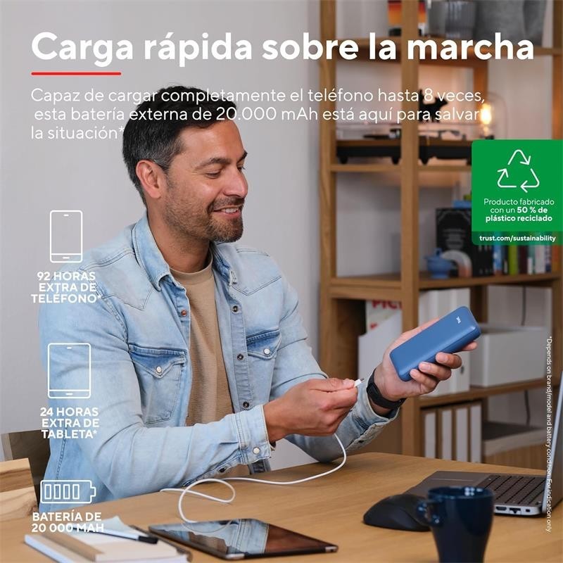Power bank Trust ofrece soluciones de carga portátiles y ecológicas para mantener tus dispositivos siempre cargados, disponibles en varias capacidades.