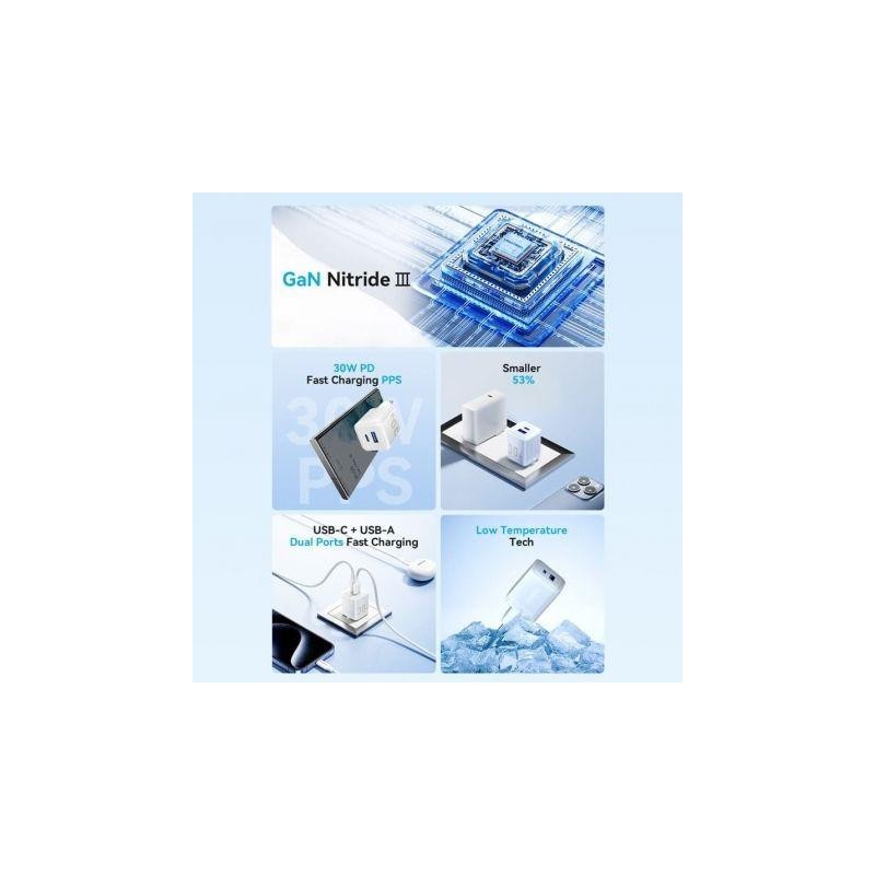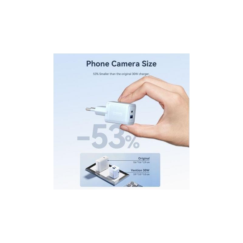 CARGADOR DE PARED VENTION GAN USB-C USB-A 30W BLACK