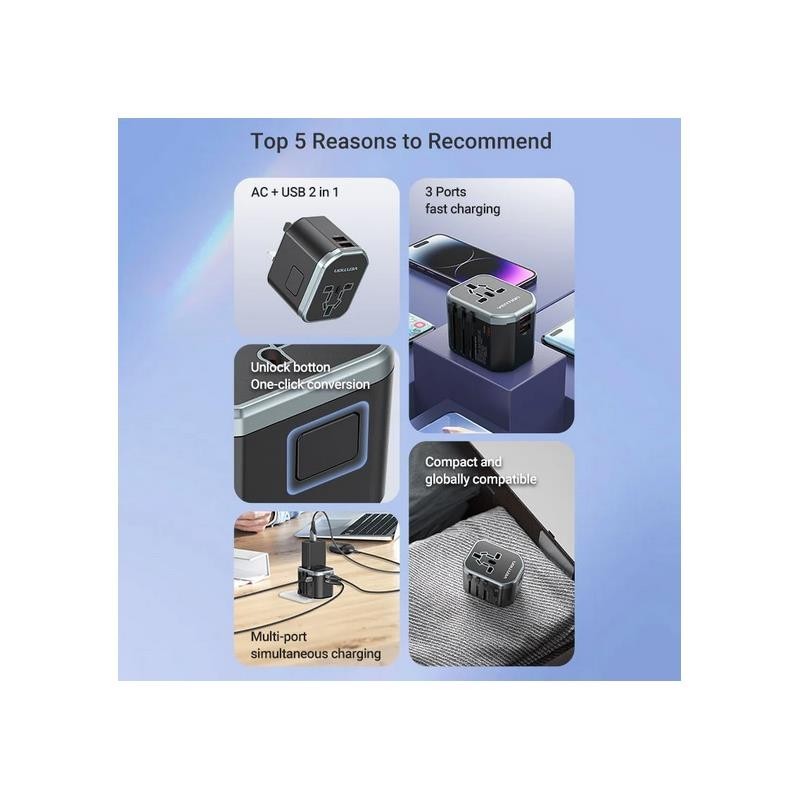 CARGADOR DE PARED VENTION UNIVERSAL USB-C 2XUSB-A 20W