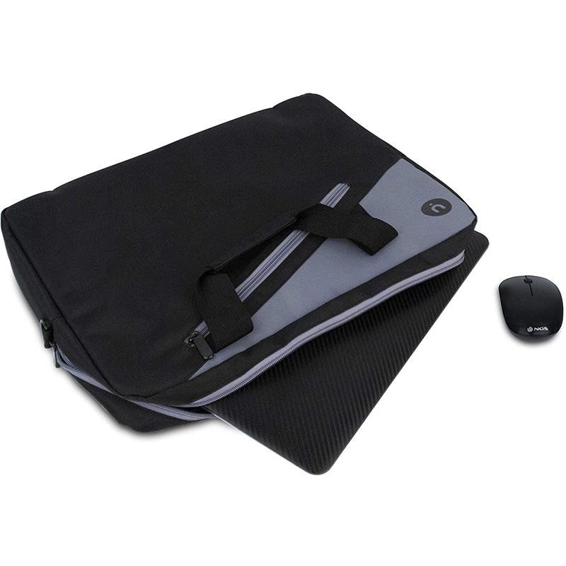 NGS Monray Master Kit Black. Tipo de funda: Maletín, Tamaño máximo de pantalla: 39,6 cm (15.6'), Número de compartimentos: 2, Número de bolsillos frontales: 1, Asa de transporte, Tirante para hombro. Peso: 365 g. Coloración de superficie: Monótono, Color del producto: Negro, Gris, Ratón incluido