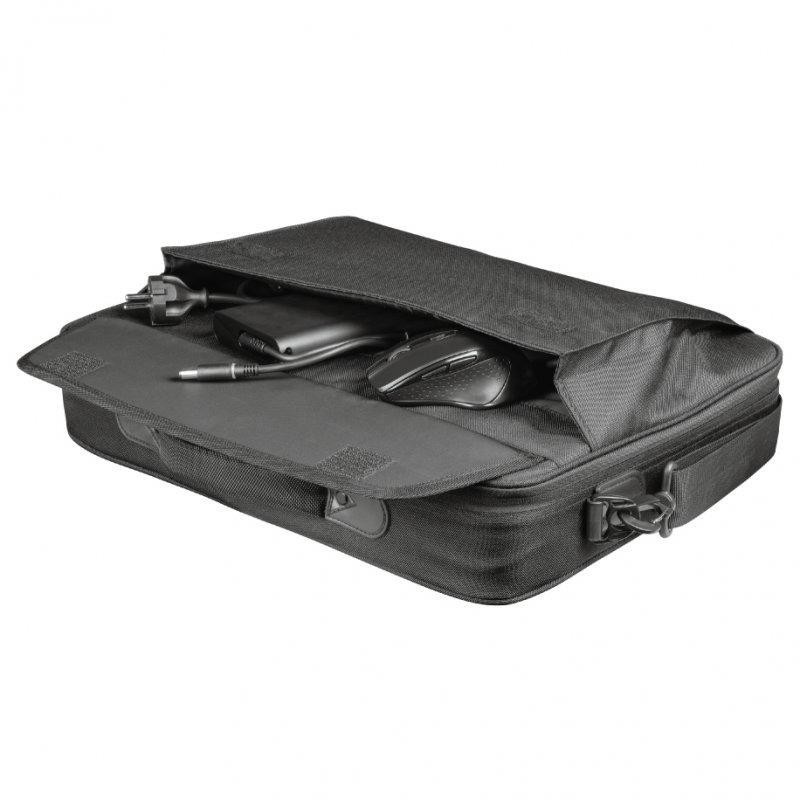 - Comodidad: Los compartimentos acolchados protegen contra daños el portátil y sus pertenencias. Y gracias a las cremalleras metálicas y a los cierres de velcro, su preciado portátil se mantiene seguro durante los desplazamientos. Para transportar el portátil, utilice el asa de mano de este maletín para portátiles o simplemente utilice la correa ajustable para hombro incluida. La mayoría de los portátiles de hasta 15,6 pulgadas caben cómodamente en el maletín Atlanta de Trust.