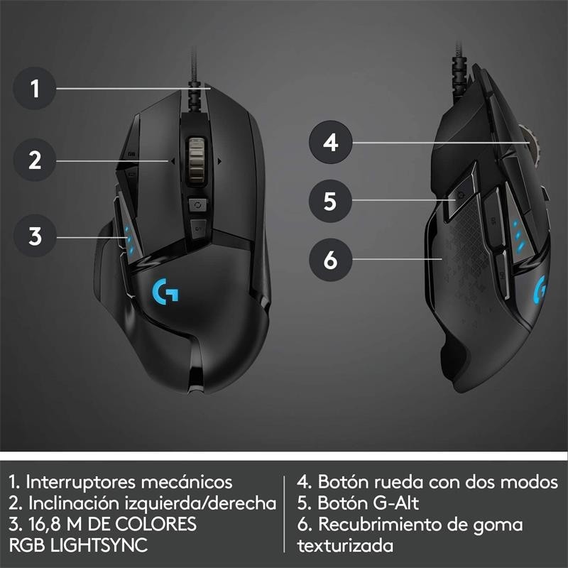 - Tecnología LIGHTSYNC: La tecnología Logitech G LIGHTSYNC proporciona iluminación RGB totalmente personalizable que también se sincroniza con tus juegos