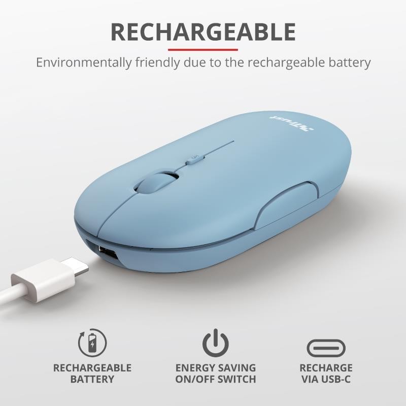 Gracias a la batería recargable, no tendrá que volver a comprar baterías desechables. Cuando el ratón se esté quedando sin batería, simplemente conéctelo con el cable USB-C incluido y listo. Ahorrará dinero y ayudará a proteger el medio ambiente.