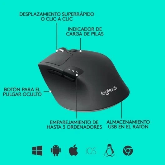 - Durable y Versátil: resistente, con una duración de batería de 24 meses(1), el M720 es compatible con ordenadores, portátiles y tablets, con Windows, macOS, Chrome OS, Linux, e iPadOS.